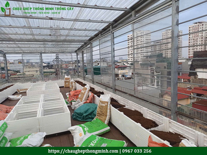 Hạng mục: Lắp đặt chậu ghép trồng rau thông minh cho sân thượng.